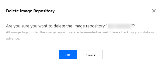 3. In the Delete Image Repository window that appears, click OK to delete all tags of the image, as shown in the figure below.