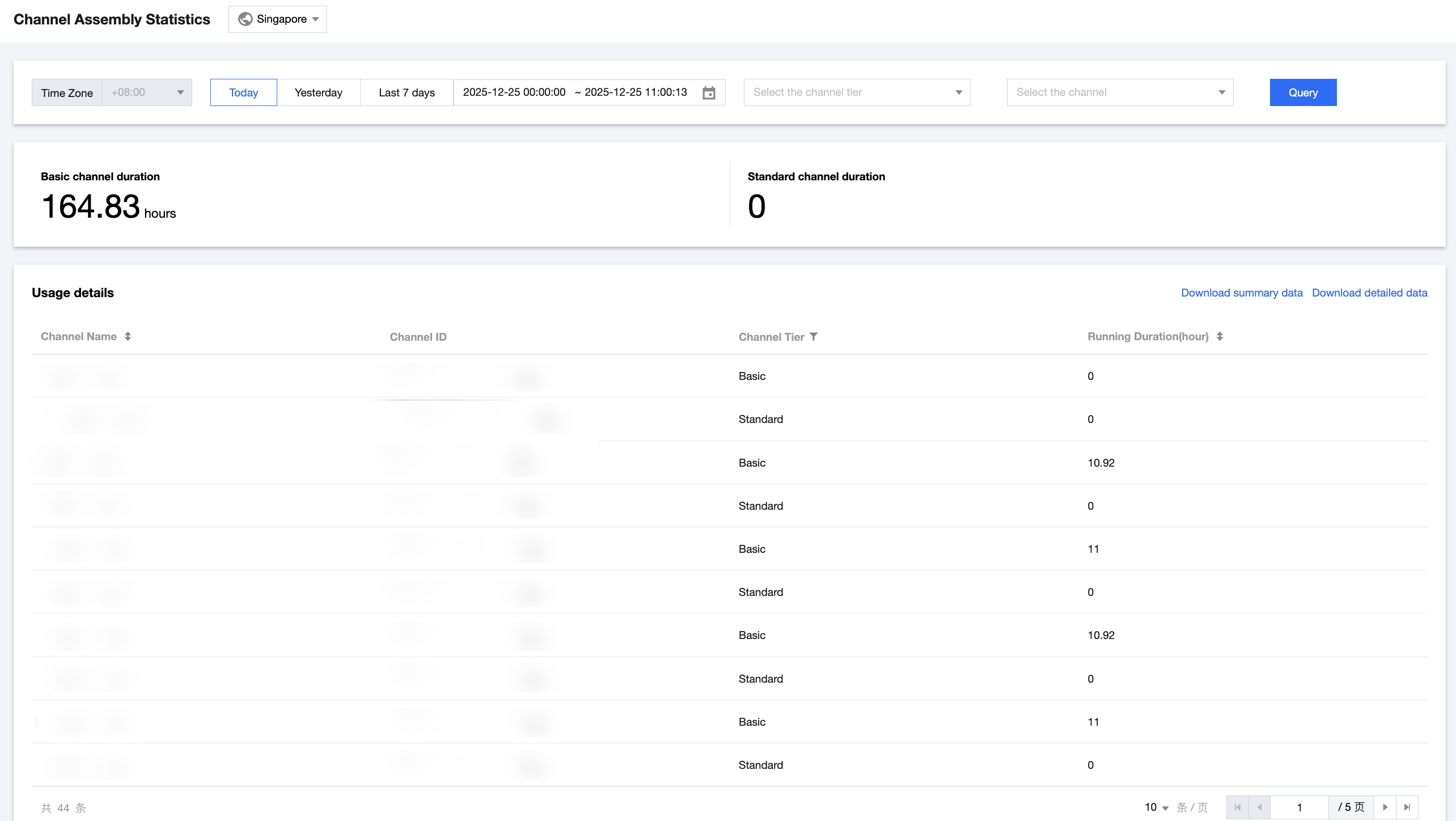 Usage Details: Supports viewing summary data, downloading summary data, and downloading detailed data.
