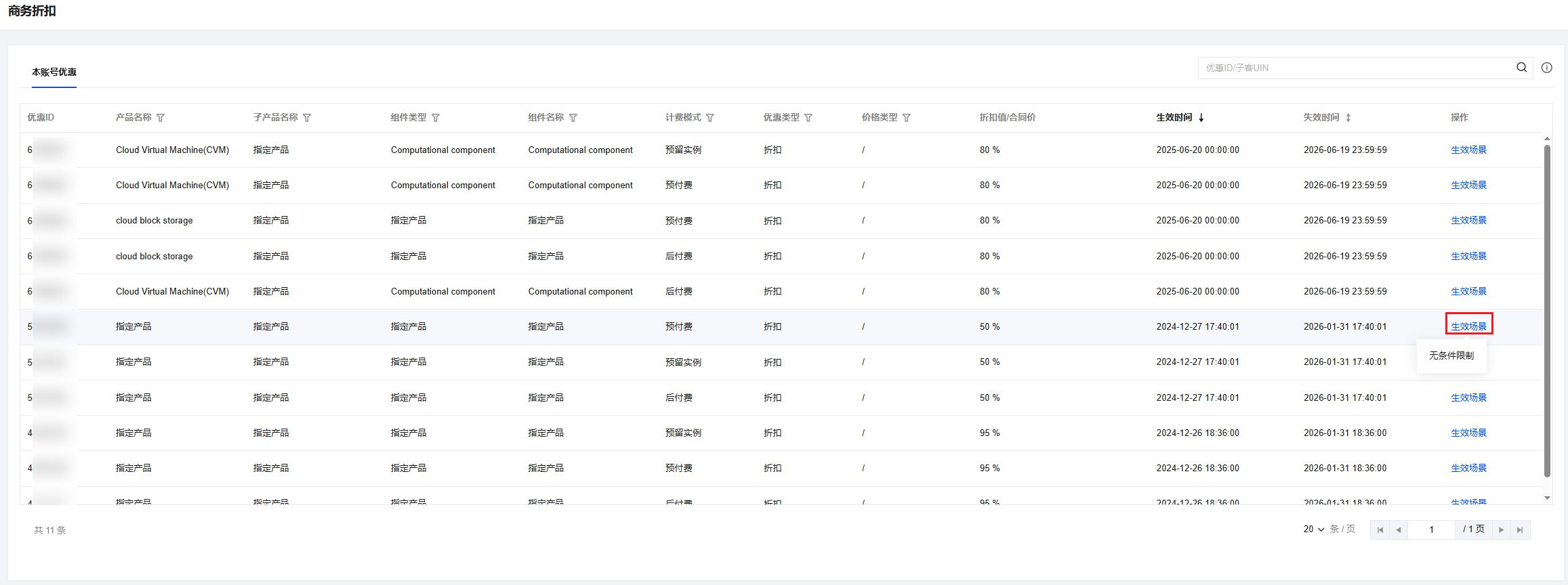 4. Hover the mouse over the effective scenario text in the operation list to view discount conditional information.