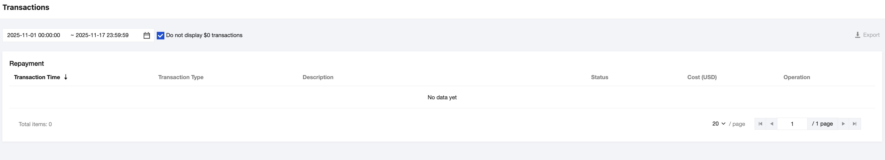 The maximum top-up amount for a credit card is 500 USD per day and 1,500 USD per month. If your spending is high, our auto-payment mechanism can help meet your requirements. For specific use, see auto payment feature description. 2. After payment, you can go to the Transactions webpage to view detailed information.