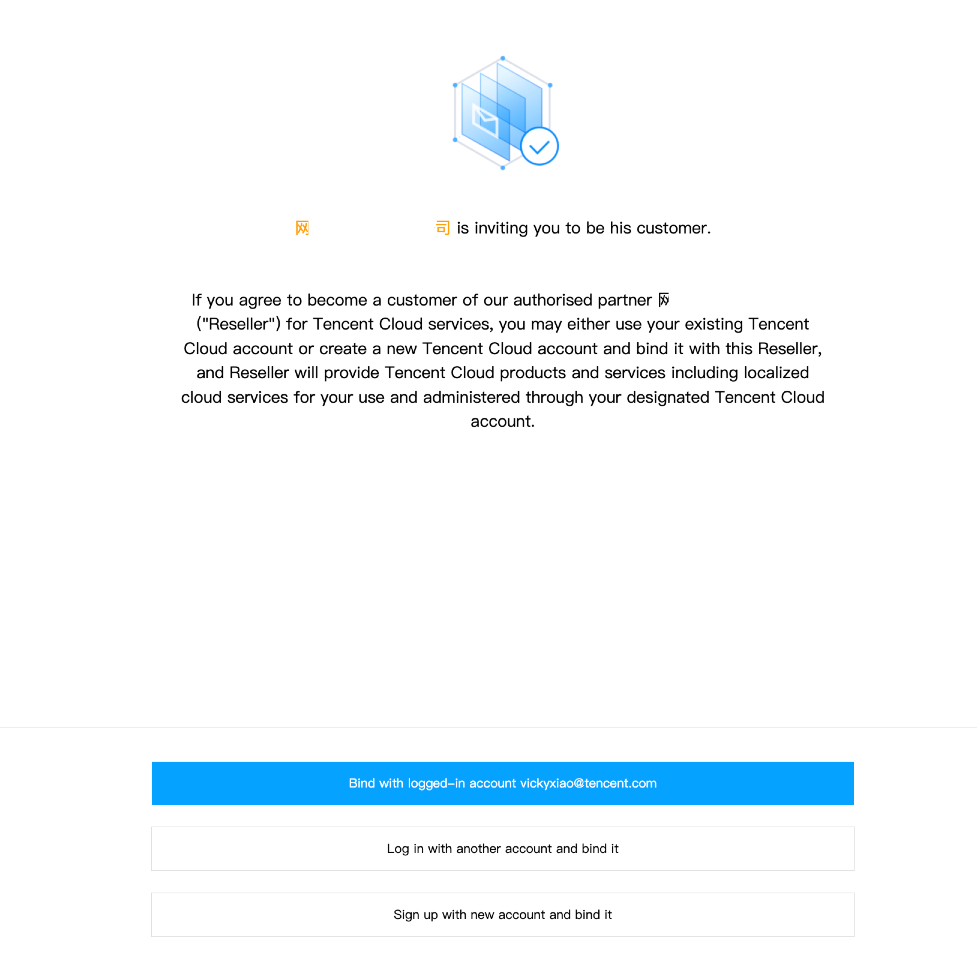 Click the dealer's invitation link, choose "Log in with existing account", "Log in with another account and bind it" and bind it" or "Sign up with new account and bind it" to bind as a customer.