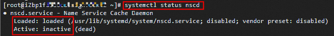 4. Run the command again to check the running status of NSCD. At this point, NSCD is already installed but in the not started status.
