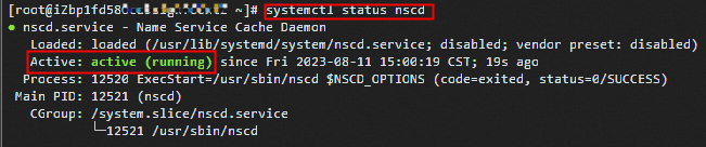 2. Run the command again to check the running status of NSCD. NSCD is already in the running status.