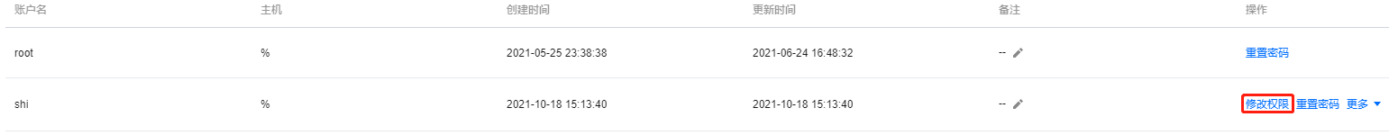ALTER | 修改数据库中表的结构,包括修改表的字段、增加表字段、删除表字段、增加和删除表的索引等操作的权限。 |