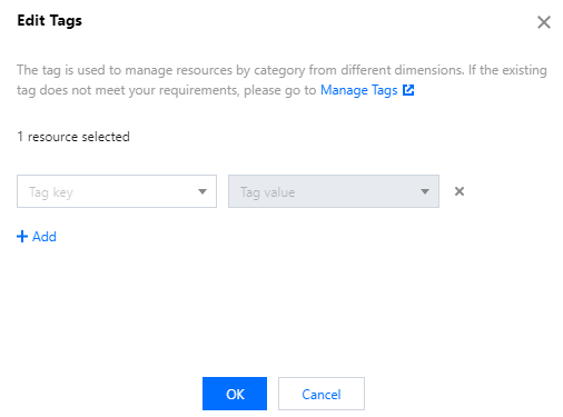 3. On the cluster details page, click after Tag in Basic Info. 4. In the pop-up window, you can edit, modify, set, and unbind the cluster tags. After confirming that everything is correct, click OK.