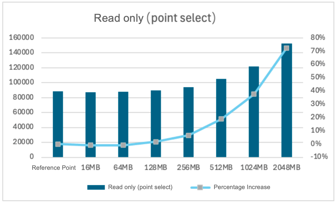 The performance improvement of query cache in read scenarios. | The performance improvement brought by Query Cache under different data volumes. | |