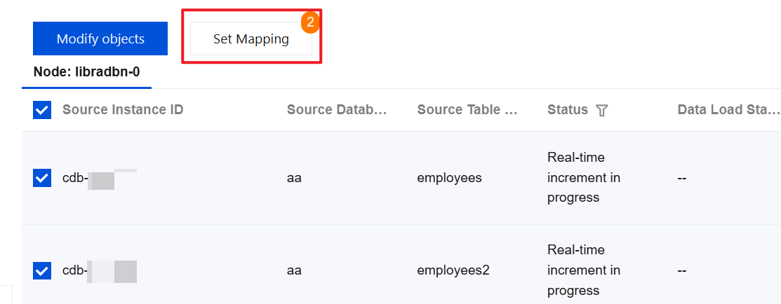 4. In Object Information, select all the tables for database merging, and click Set Mapping at the top.