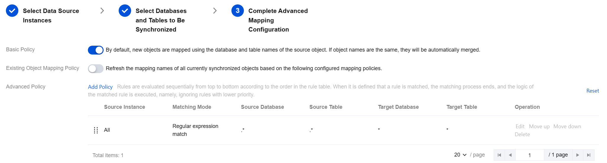 2. In the third step Complete Advanced Mapping Configuration, you can define the policies for advanced mapping settings.