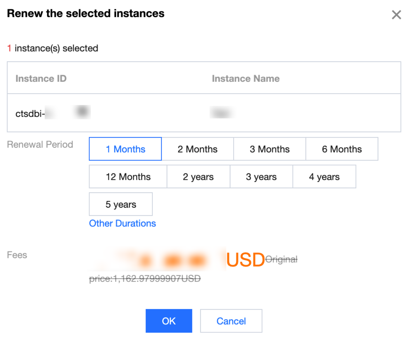 In the Renewal Period, select the duration of the instance renewal by full month or full year.