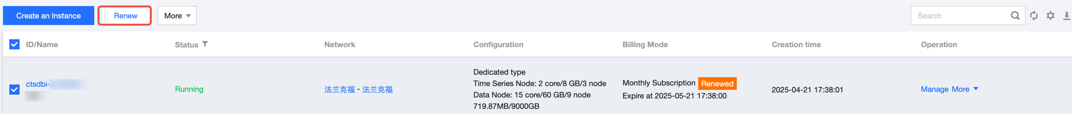 3. Check the instances to be renewed on the instance list and click Renew above the instance list.