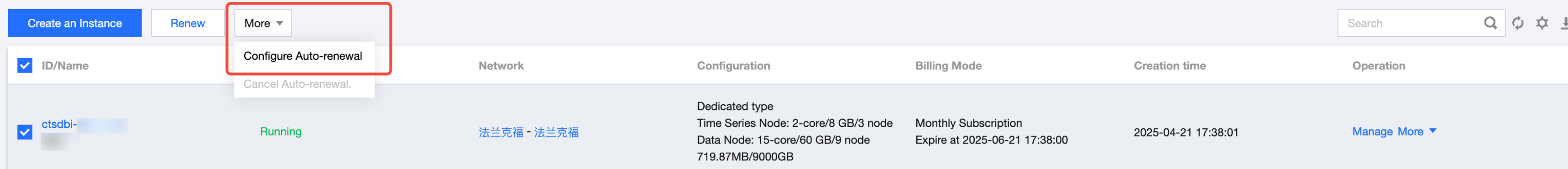 If automatic renewal is not enabled when an instance is purchased, to avoid impacting your business, you can follow the steps below to enable automatic renewal after purchase.