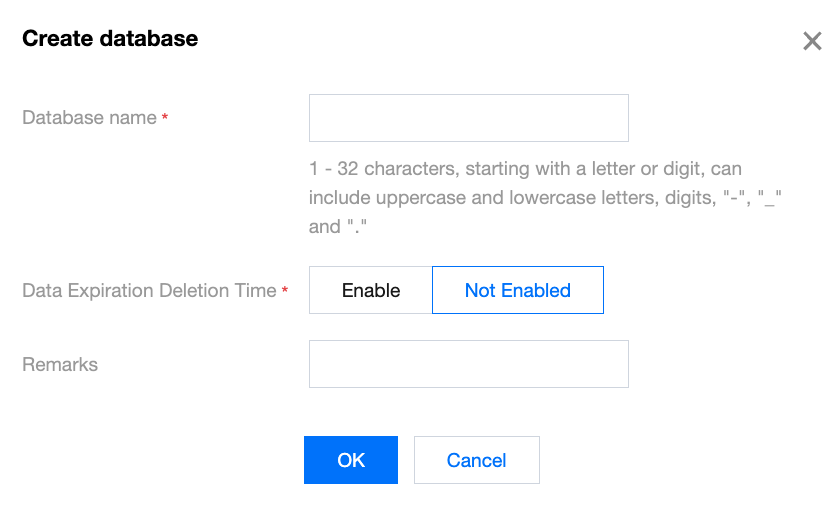 Data Expiration Deletion Time | Identifies whether the database has the TTL feature enabled. Configures the data expiration deletion time. Data will be automatically deleted upon reaching the set expiration time. | Enable: Configure the expiration deletion time in the input box below. Unit: days. Disable: Disable the automatic deletion upon expiration feature. |