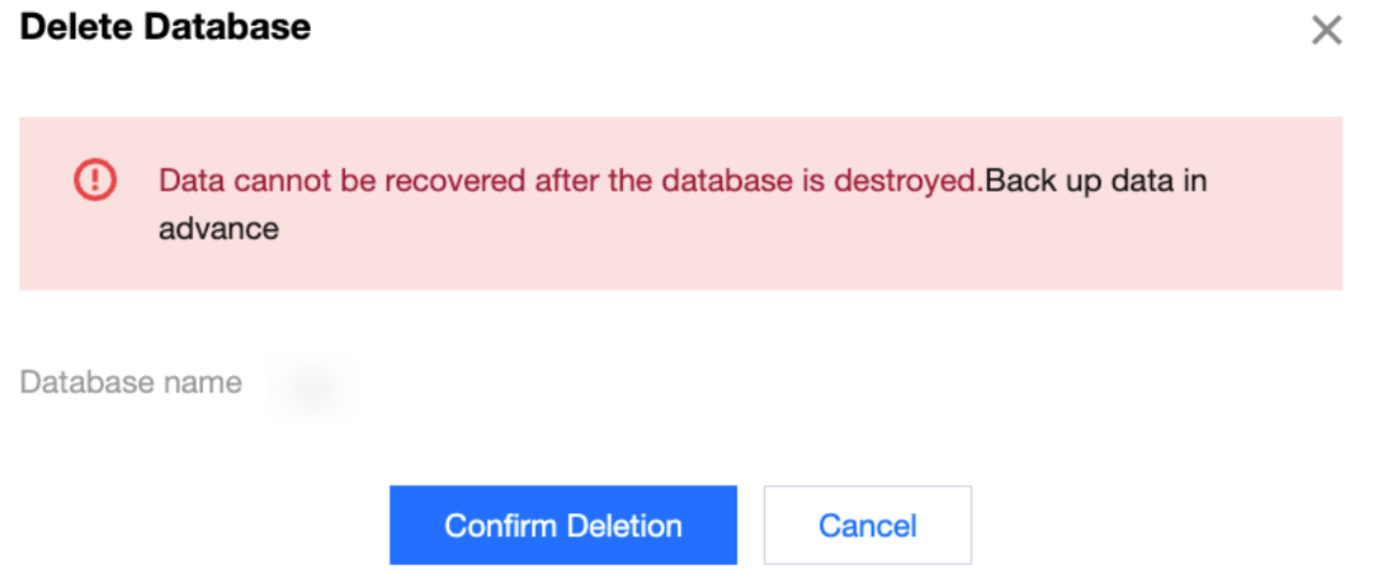 Data cannot be recovered after the database is terminated. Back up your data in advance.