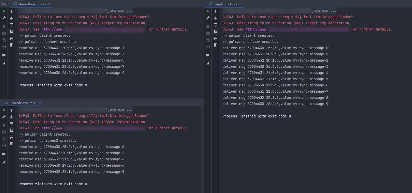 // Construct a consumer.Consumer<byte[]> consumer = pulsarClient.newConsumer()// Full topic path, in the format of persistent://cluster (tenant) ID/namespace/topic name, copied from the Topic page..topic("persistent://pulsar-xxx/sdk_java/topic1")// You need to create a subscription on the topic details page in the console. Specify the subscription name here..subscriptionName("sub_topic1")// Declare the consumption mode to be the Key_Shared mode..subscriptionType(SubscriptionType.Key_Shared)// Disallow out-of-order delivery..keySharedPolicy(KeySharedPolicy.autoSplitHashRange().setAllowOutOfOrderDelivery(false)).subscribe();