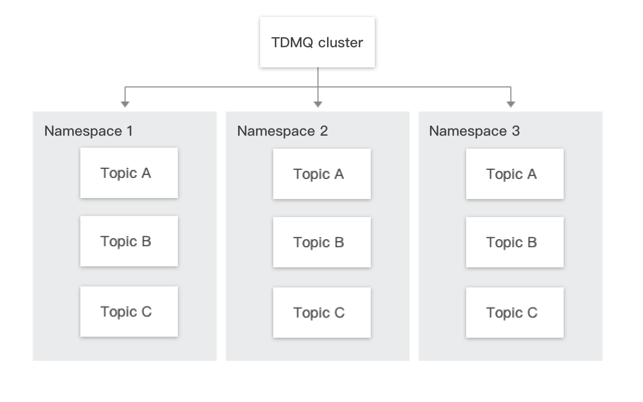 Cluster is a resource dimension in TDMQ for Apache Pulsar, and namespaces, topics, and role permissions of different clusters are completely isolated from each other. Each cluster has its own resource limits, such as the total number of topics and message retention period. It is common for the development, test, and production environments to use their respective dedicated clusters.