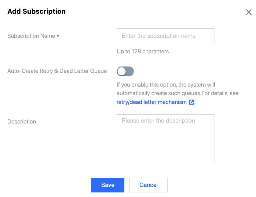 Auto-Create Retry & Dead Letter Queue: You can choose whether to automatically create retry and dead letter topics.