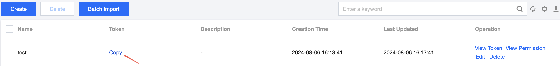 On the Role Management page, copy the role token. Role token leakage may lead to data leakage. Keep your role token securely.