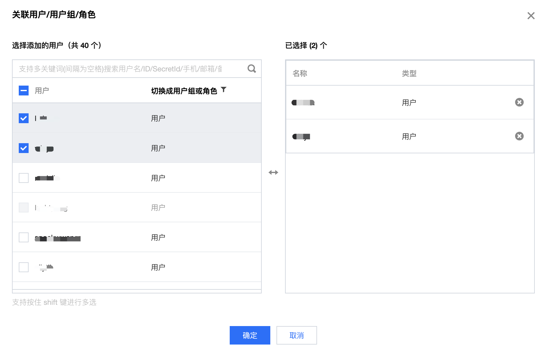 3. In the search results, click Associate User/Group/Role in the operation column and select the sub-account to which the permissions need to be granted.