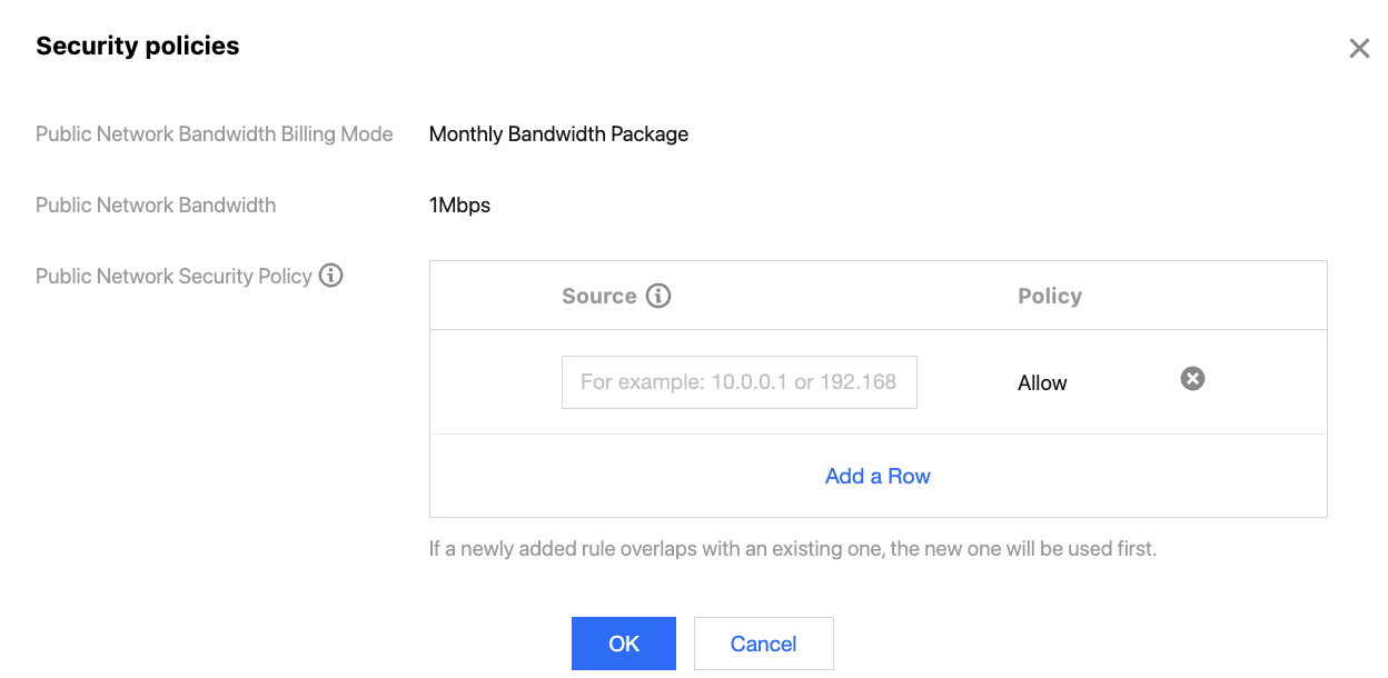 2. In the pop-up window, configure the allowed IP addresses. Click OK to complete the configuration.