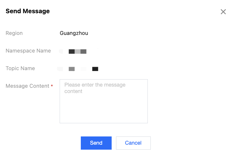 3. Enter the message content in the pop-up dialog box. The message size cannot exceed 64 KB.