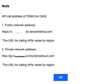SERVER_ENDPOINT | API 调用地址,在 TDMQ CMQ 版控制台的主题订阅 > API 请求地址处复制。 |