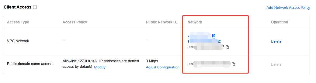host | Cluster access address port, retrieved from the Client Access module on the cluster basic information page. ![]() |