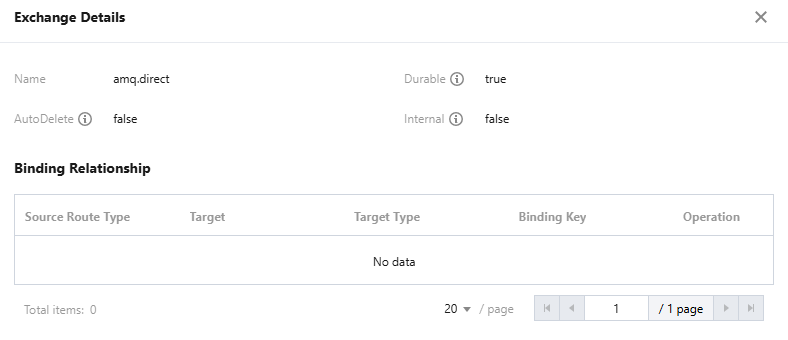 In open-source Managed Clusters, the default Exchange named "AMQP default exchange" is bound by default to each Queue, with the routing key equal to the Queue Name. The binding relationship of the default Exchange is unable to cancel or delete.