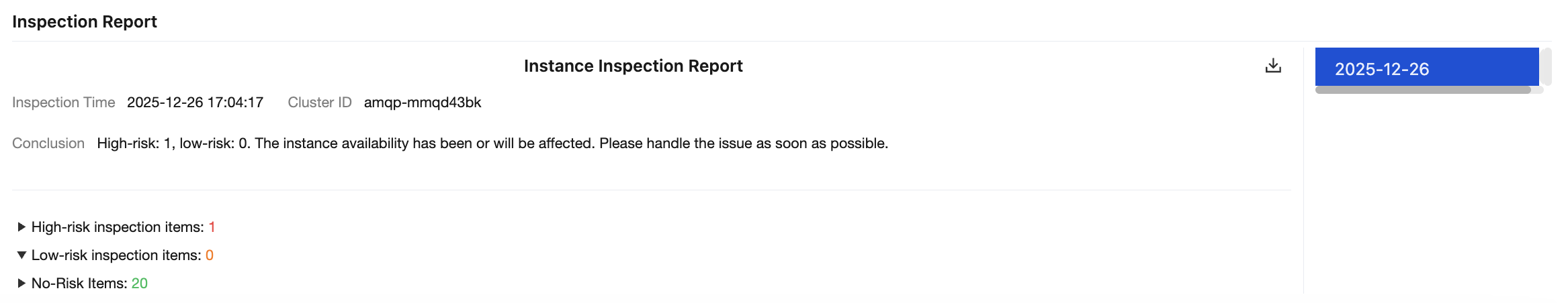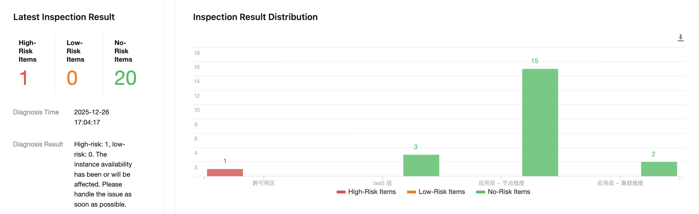 Low-risk: indicates that the cluster has relatively serious issues or hidden risks that may affect its availability. It is recommended to address these issues as soon as possible.