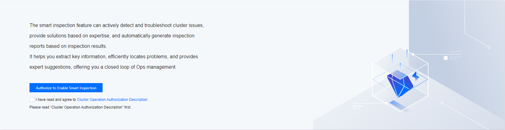 5. After confirmation, select I have read and agree to Cluster Operation Authorization Description. Then click Authorize to Enable Smart Inspection to access the intelligent inspection feature.