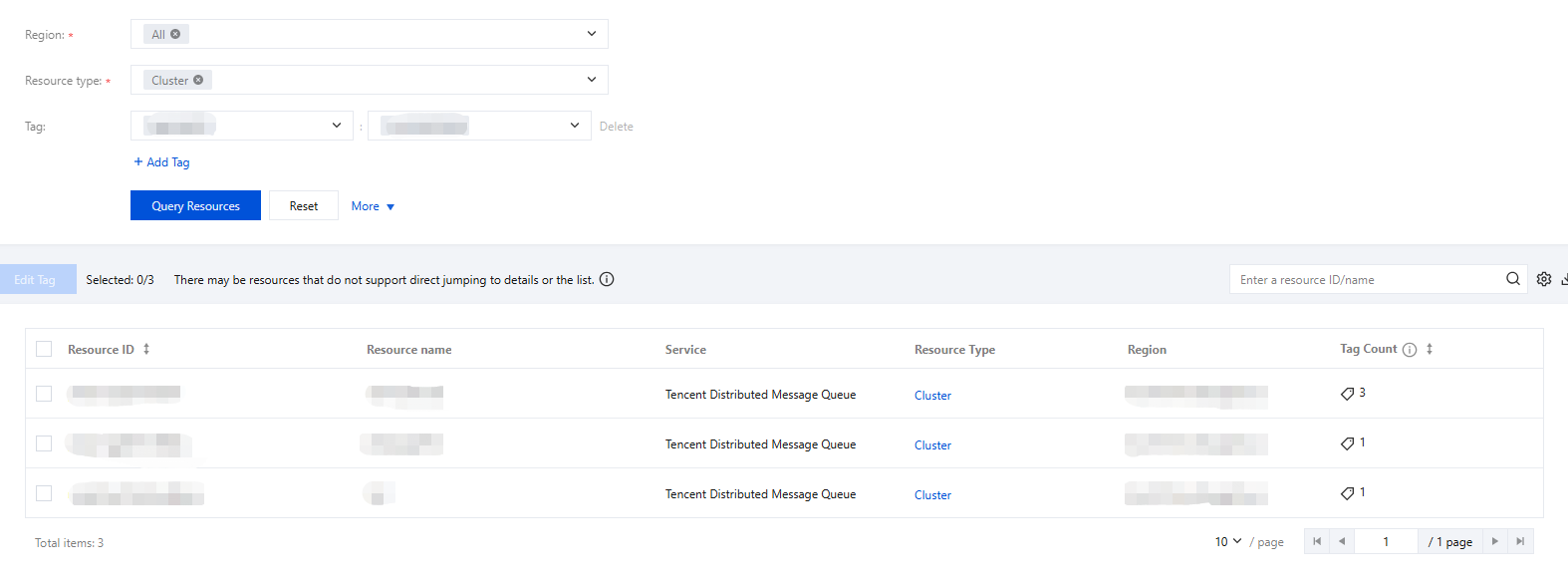 4. Select the required resources in the query result, and click Edit Tag to bind or unbind tags in batches.