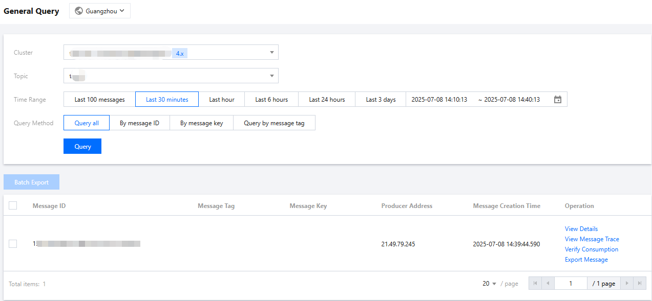 groupName | Producer group name, which can be copied under the Group tab on the Cluster page in the console. |