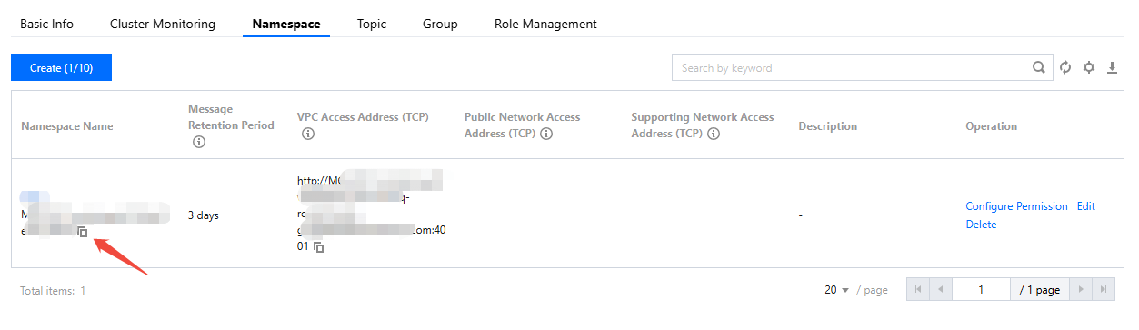 namespace | Namespace name, which can be copied on the Namespace page in the console.If you use a 4.x generic cluster, fill in the cluster ID here. ![]() |