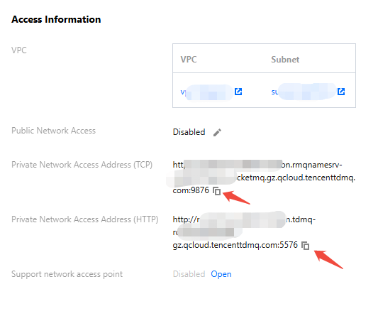 nameserver | Cluster access address, which can be copied under the Network module on the cluster’s basic information page in the console. ![]() |