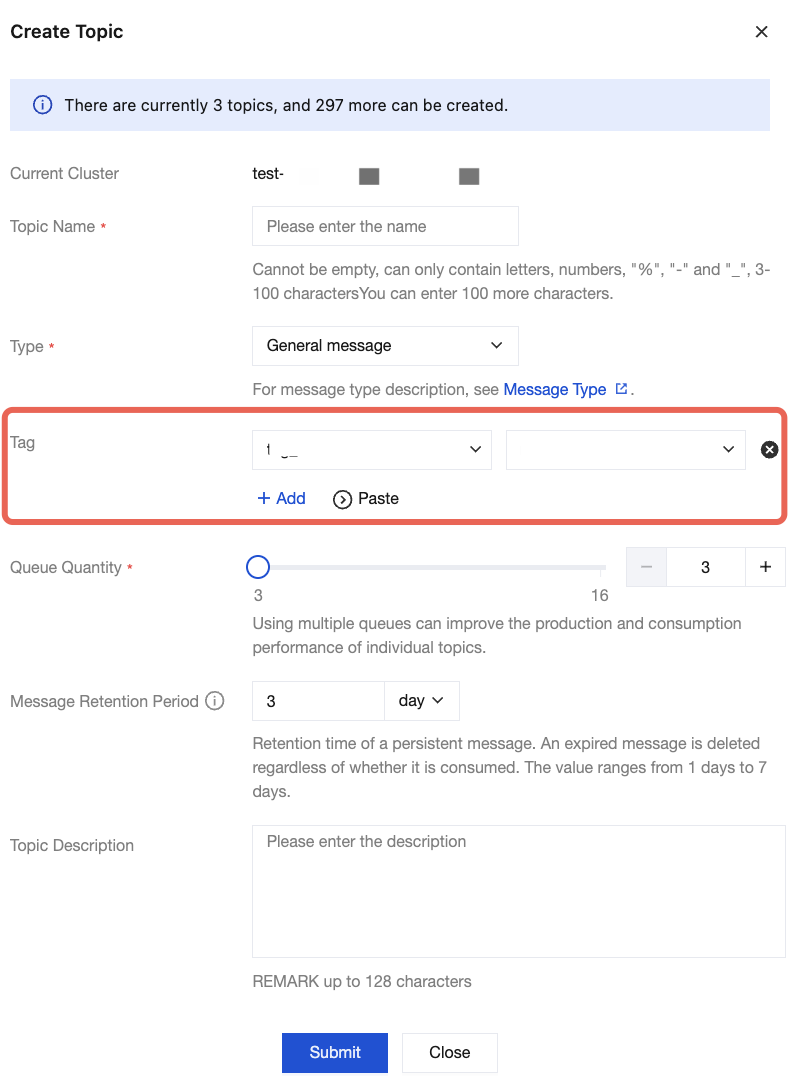 Currently, TDMQ for RocketMQ supports tag management at three resource levels: cluster, topic, and group.
