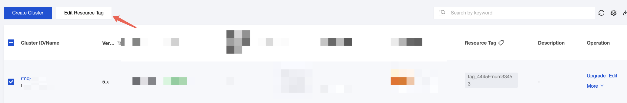 Cluster: Select the target resources, click Edit Resource Tag in the upper-left corner, and bind resource tags to the cluster.
