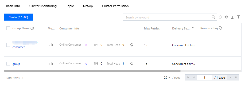 group | Copy the consumer group name from the Group Management page in the console. ![]() |