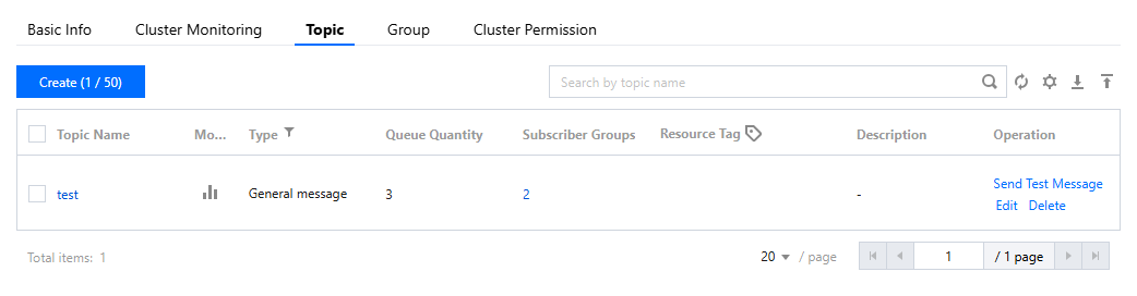 topic | Copy the Topic name from the Topic management page in the console. ![]() |