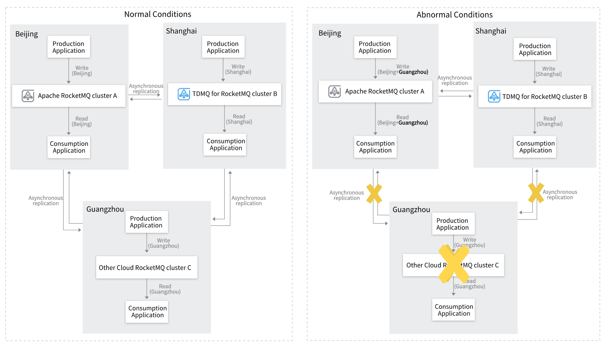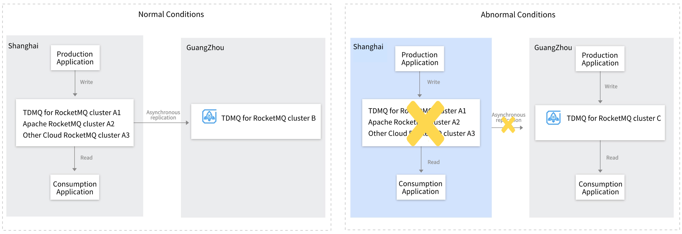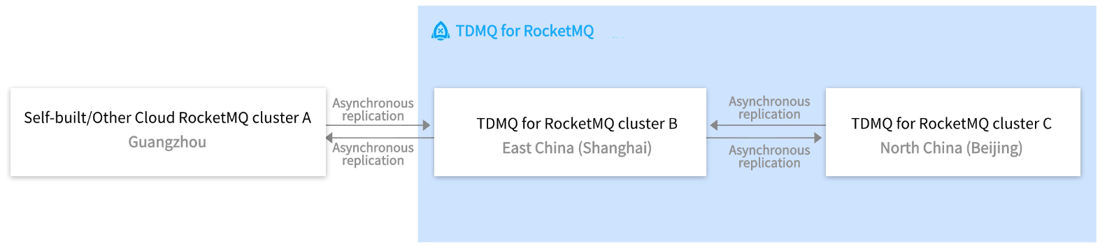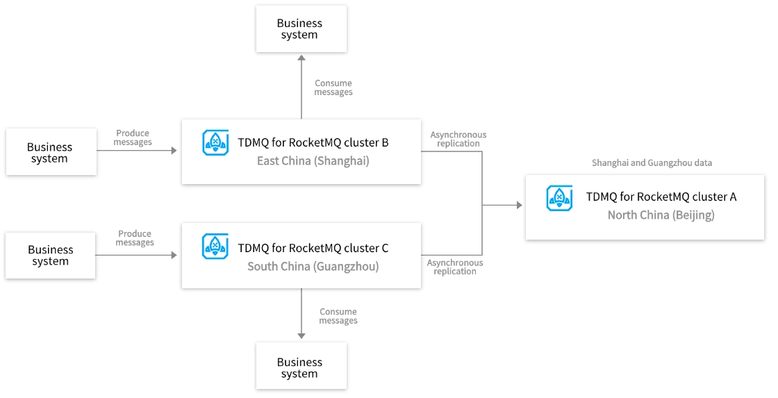 TDMQ for RocketMQ provides the cross-cluster message replication feature, enabling the replication of messages from different clusters within the same region and across regions. These capabilities meet enterprise customers' disaster recovery requirements such as data synchronization, cross-region cold backup, and multi-site active-active.