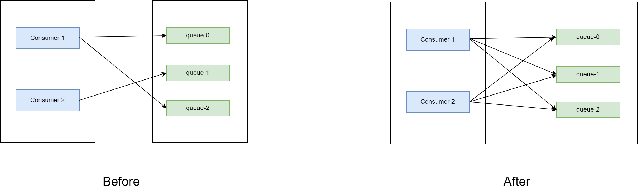 /** Licensed to the Apache Software Foundation (ASF) under one or more* contributor license agreements. See the NOTICE file distributed with* this work for additional information regarding copyright ownership.* The ASF licenses this file to You under the Apache License, Version 2.0* (the "License"); you may not use this file except in compliance with* the License. You may obtain a copy of the License at** http://www.apache.org/licenses/LICENSE-2.0** Unless required by applicable law or agreed to in writing, software* distributed under the License is distributed on an "AS IS" BASIS,* WITHOUT WARRANTIES OR CONDITIONS OF ANY KIND, either express or implied.* See the License for the specific language governing permissions and* limitations under the License.*/package org.apache.rocketmq.client.java.example;import java.time.Duration;import java.util.Collections;import java.util.List;import org.apache.rocketmq.client.apis.ClientConfiguration;import org.apache.rocketmq.client.apis.ClientException;import org.apache.rocketmq.client.apis.ClientServiceProvider;import org.apache.rocketmq.client.apis.SessionCredentialsProvider;import org.apache.rocketmq.client.apis.StaticSessionCredentialsProvider;import org.apache.rocketmq.client.apis.consumer.FilterExpression;import org.apache.rocketmq.client.apis.consumer.FilterExpressionType;import org.apache.rocketmq.client.apis.consumer.SimpleConsumer;import org.apache.rocketmq.client.apis.message.MessageId;import org.apache.rocketmq.client.apis.message.MessageView;import org.slf4j.Logger;import org.slf4j.LoggerFactory;public class SimpleConsumerExample {private static final Logger log = LoggerFactory.getLogger(SimpleConsumerExample.class);private SimpleConsumerExample() {}@SuppressWarnings({"resource", "InfiniteLoopStatement"})public static void main(String[] args) throws ClientException {final ClientServiceProvider provider = ClientServiceProvider.loadService();// Credential provider is optional for client configuration.String accessKey = "User A ak";String secretKey = "User A sk";SessionCredentialsProvider sessionCredentialsProvider =new StaticSessionCredentialsProvider(accessKey, secretKey);String endpoints = "Tencent Cloud webpage access point";ClientConfiguration clientConfiguration = ClientConfiguration.newBuilder().setEndpoints(endpoints)// On some Windows platforms, you may encounter SSL compatibility issues. Try turning off the SSL option in// client configuration to solve the problem please if SSL is not essential.// .enableSsl(false).setCredentialProvider(sessionCredentialsProvider).build();String consumerGroup = "consumption group";// Default consumption time, 30s, which means that for pulled messages, if consumption is not completed within 30s, the message will be pulled again by another client.// users are advised to configure based on own scenarioDuration awaitDuration = Duration.ofSeconds(30);String tag = "*";String topic = "topic name";FilterExpression filterExpression = new FilterExpression(tag, FilterExpressionType.TAG);// In most case, you don't need to create too many consumers, singleton pattern is recommended.SimpleConsumer consumer = provider.newSimpleConsumerBuilder().setClientConfiguration(clientConfiguration)// Set the consumer group name..setConsumerGroup(consumerGroup)// set await duration for long-polling..setAwaitDuration(awaitDuration)// Set the subscription for the consumer..setSubscriptionExpressions(Collections.singletonMap(topic, filterExpression)).build();// Max message num for each long polling.int maxMessageNum = 16;// Set message invisible duration after it is received.Duration invisibleDuration = Duration.ofSeconds(15);// Receive message, multi-threading is more recommended.do {final List<MessageView> messages = consumer.receive(maxMessageNum, invisibleDuration);log.info("Received {} message(s)", messages.size());for (MessageView message : messages) {final MessageId messageId = message.getMessageId();try {consumer.ack(message);log.info("Message is acknowledged successfully, messageId={}", messageId);} catch (Throwable t) {log.error("Message is failed to be acknowledged, messageId={}", messageId, t);}}} while (true);// Close the simple consumer when you don't need it anymore.// You could close it manually or add this into the JVM shutdown hook.// consumer.close();}}