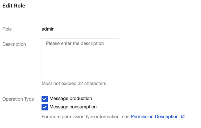 Description | Description of a role, which cannot exceed 32 characters. |