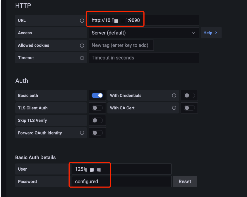 3. Get the HTTP API address in the service address module. If you need to improve the security of Grafana data read, you can obtain the authentication token of the TMP instance and fill it in as instructed in step 2.