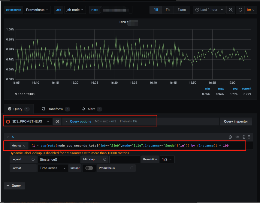 5. If the chart of the corresponding metric can be displayed, the operation is successful. Otherwise, check whether the API address or token entered is correct, and whether the data source has TMP data.