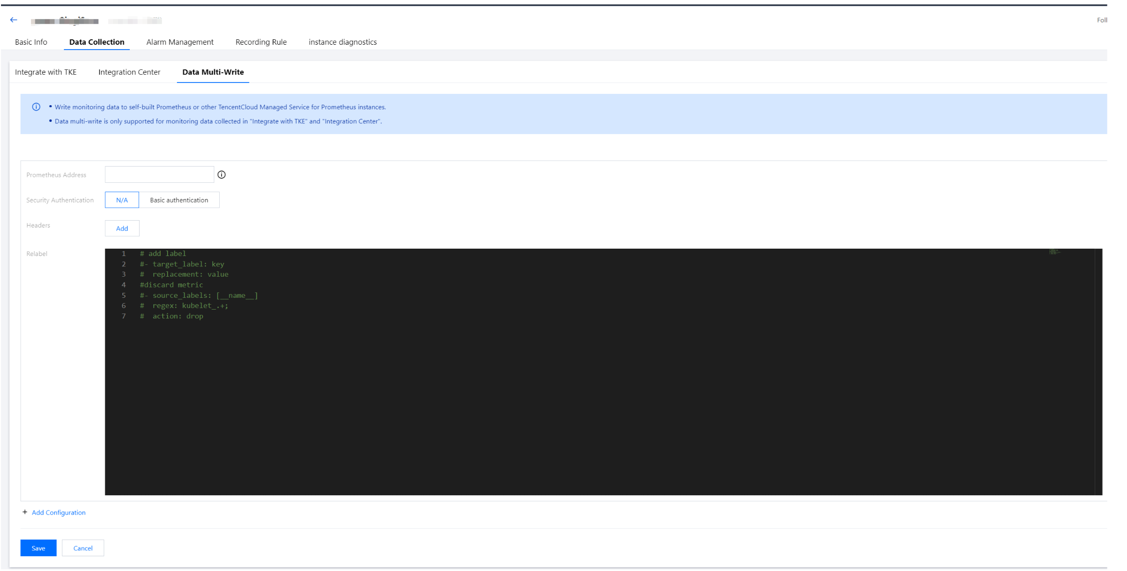 The data multi-write feature supports writing monitoring data to self-built Prometheus or other Prometheus monitoring instances.