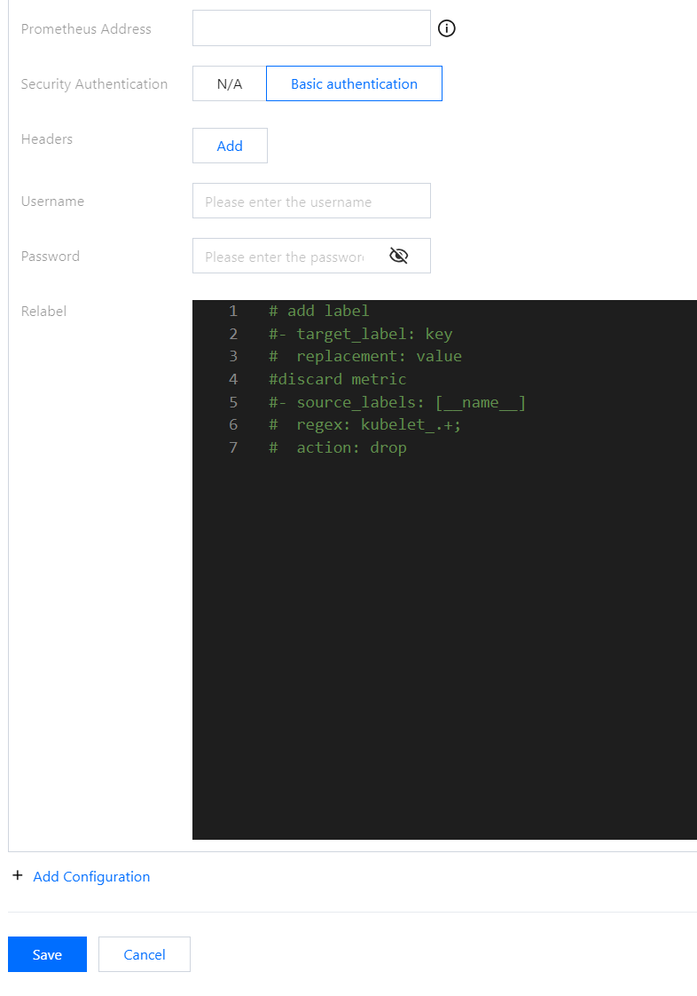 Prometheus address: Obtain the HTTP API address from the basic information of instances.