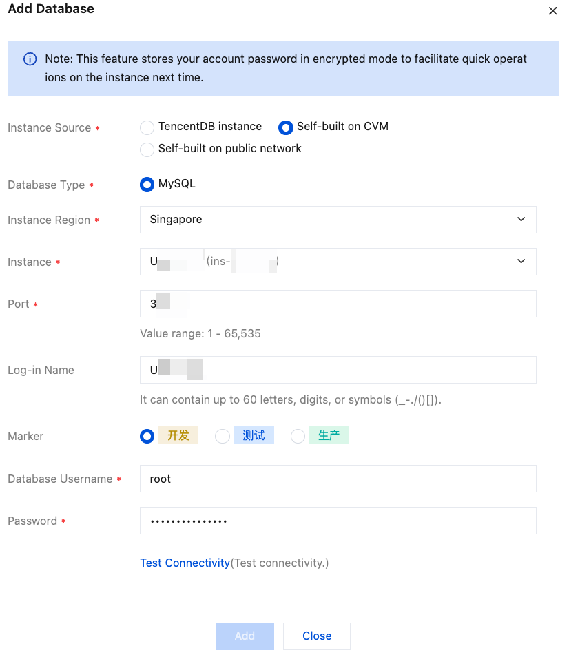 Data Source ID | If the instance has been added to the data source list, the corresponding data source ID will be displayed. |