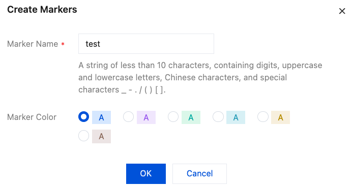 4. In the pop-up dialog box, enter the marker name, select the marker color, and click OK.