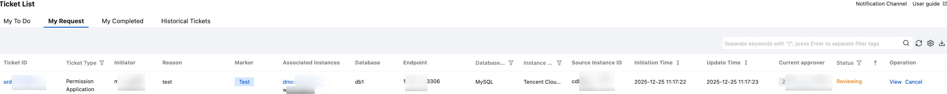 If the ticket status is Reviewing. Once approved, the system automatically executes the request. If the status changes to Completed, the permission request is successful.