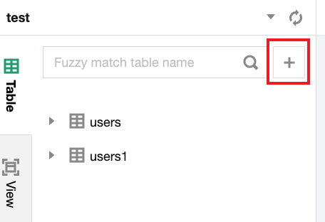 1. In the top-left corner of the page, select the database where the table will be created.