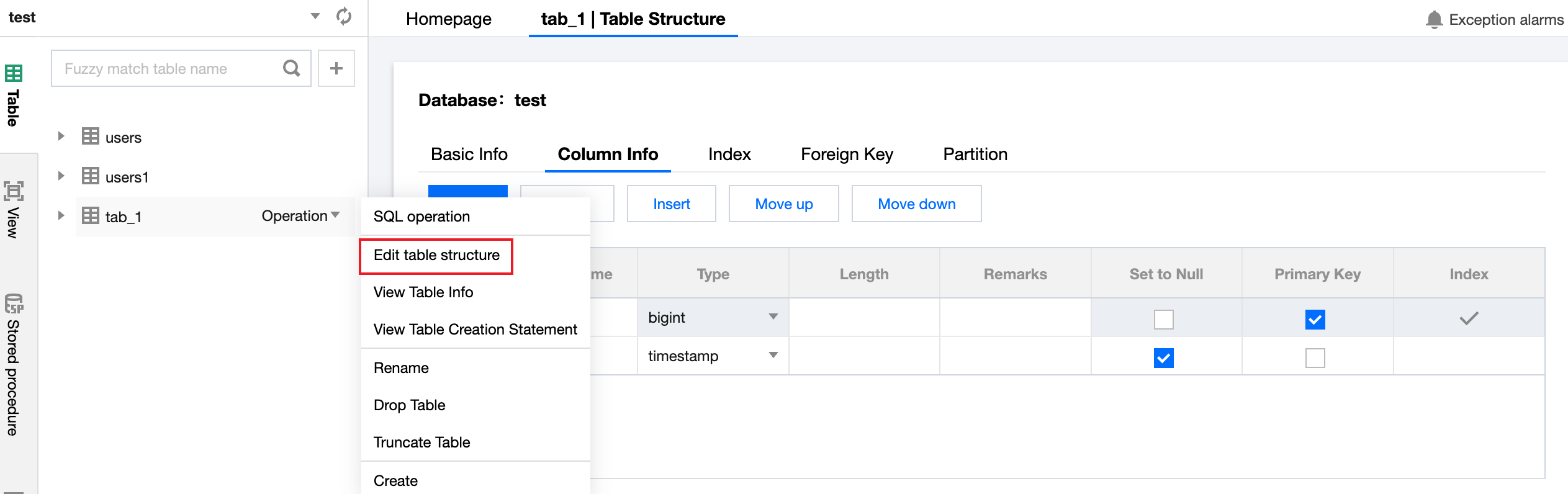 1. Edit table structure