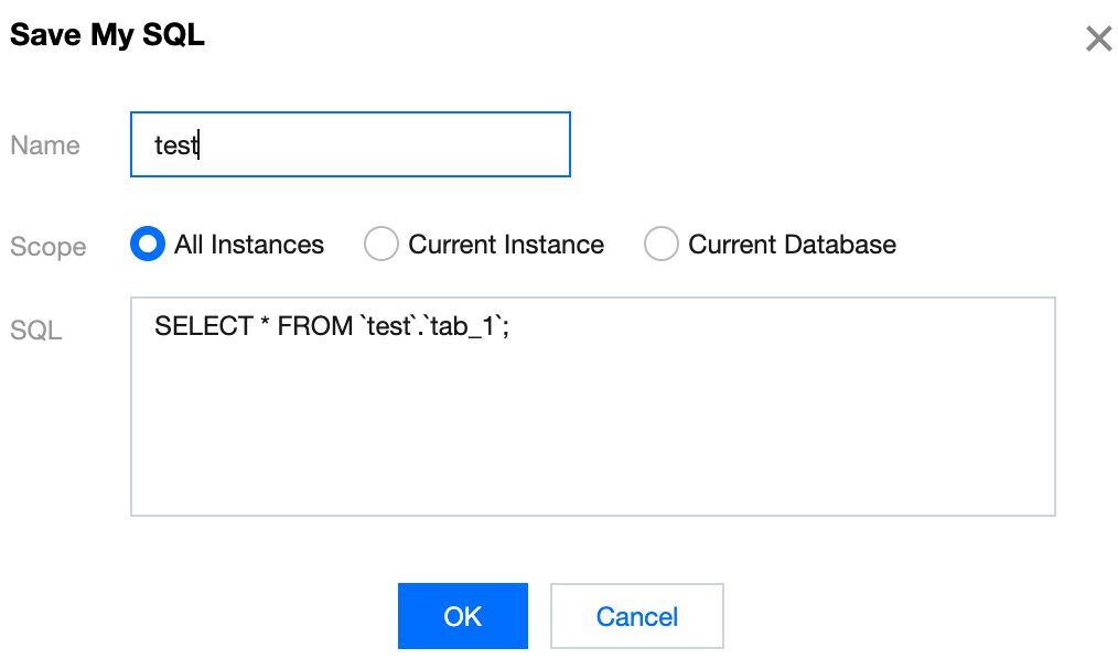 3. Click Save to store the current SQL statement in My Template.